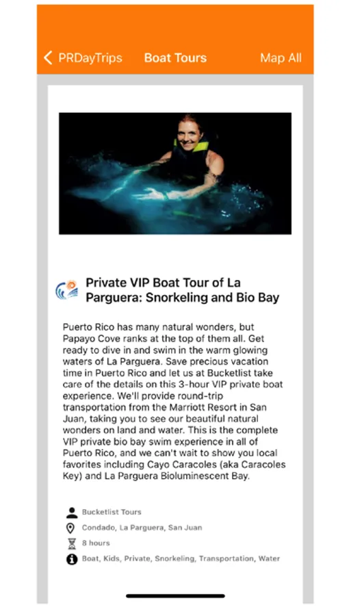 The PRDayTrips app is your comprehensive travel guide and activity directory that unlocks all the potential that Puerto Rico has to offer. As a companion app to our PRDayTrips.com Travel Planning Guide website, this app is a full-featured guide designed for your mobile phone or tablet devices. Access a large variety of information and photos on every popular subject for vacationing in Puerto Rico.