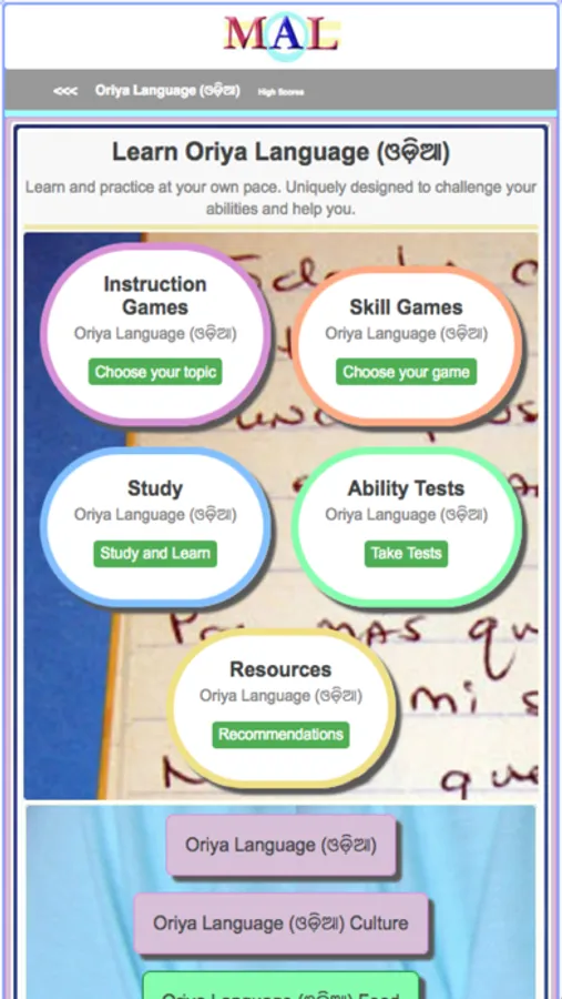 Play Oriya Learning Games, Study and Learn with online Flash cards, Take Oriya Tests