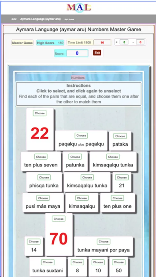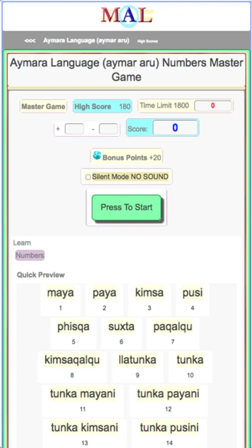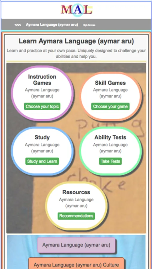 Play Aymara Learning Games, Study and Learn with online Flash cards, Take Aymara Tests