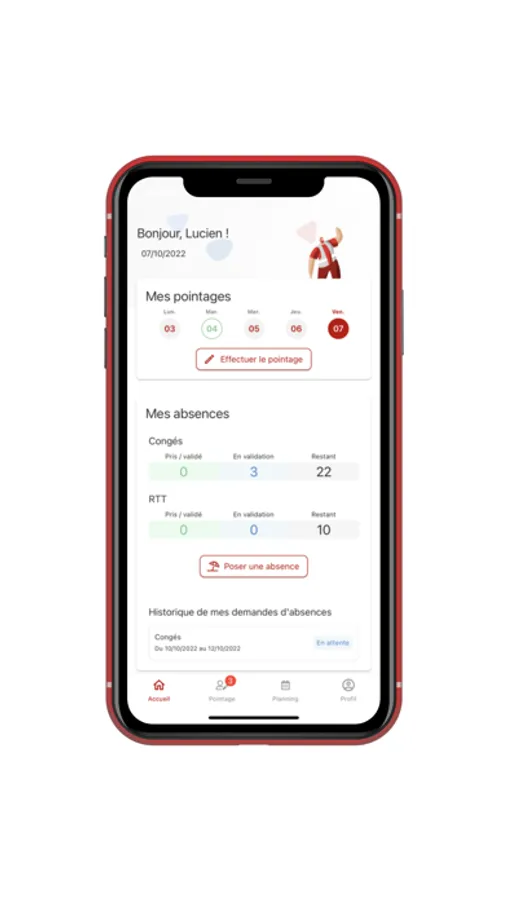 Ces derniers peuvent être directement posés depuis l'application, et votre compteur de congés est directement accessible depuis la page d'accueil.