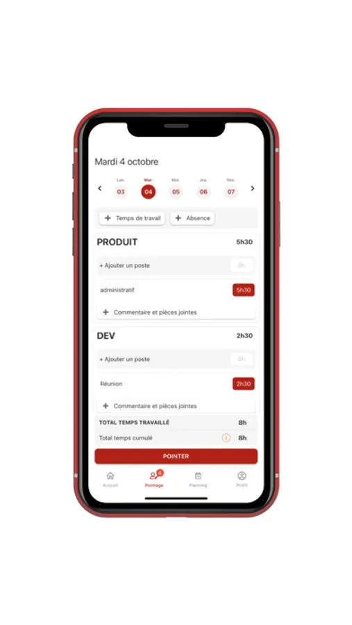 Vous êtes chef de chantier? Il vous sera également possible d'effectuer les pointages de votre équipe.