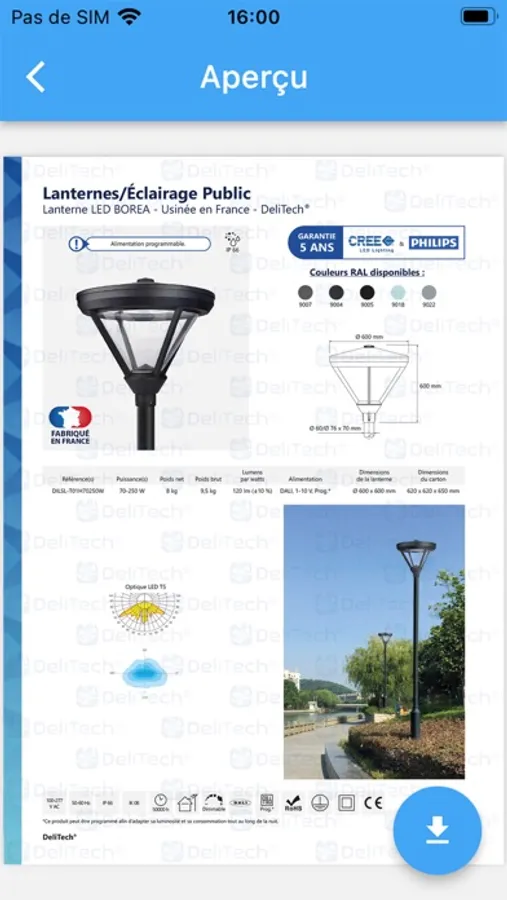 L’application DELISCAN permet d’obtenir une liste complète de tous les documents et fiches techniques de vos produits.