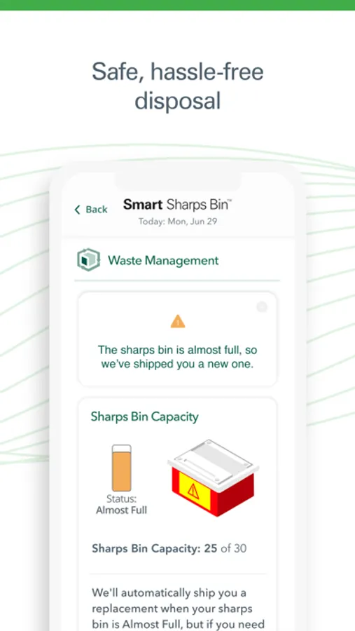 STORE SHARPS SECURELY: See your current sharps container capacity and get a new one sent automatically before you need it