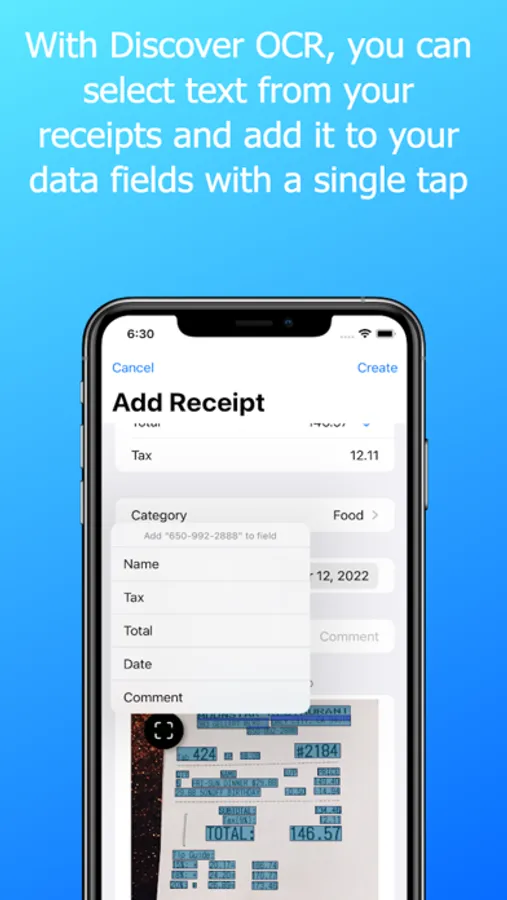- You can select text from your receipts using Discover OCR by tapping on any text on the receipt image