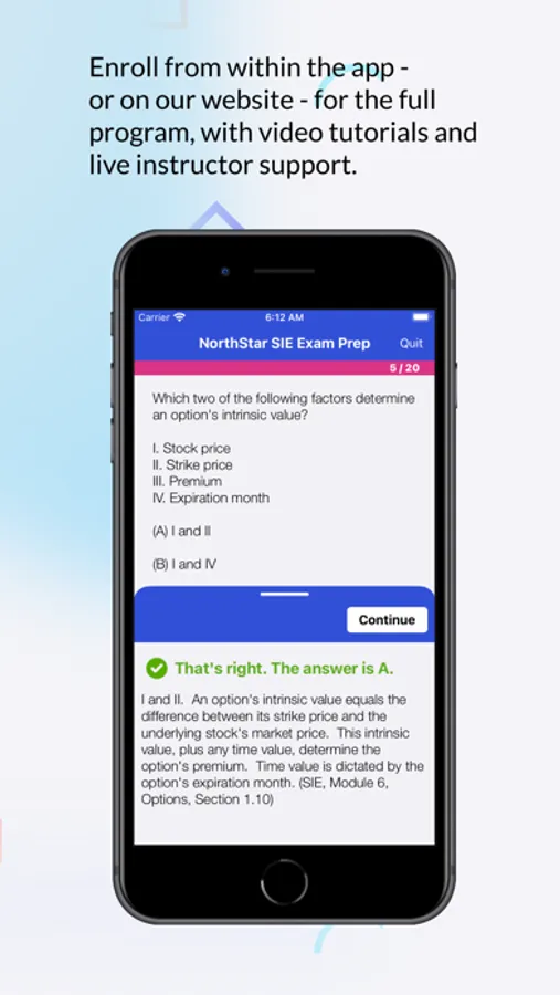 NorthStar SIE is the companion app to the Securities Industry Essentials course offered by NorthStar Securities Exam Prep. It pulls questions from our test bank into an interactive quiz format, giving you instant feedback on your responses.