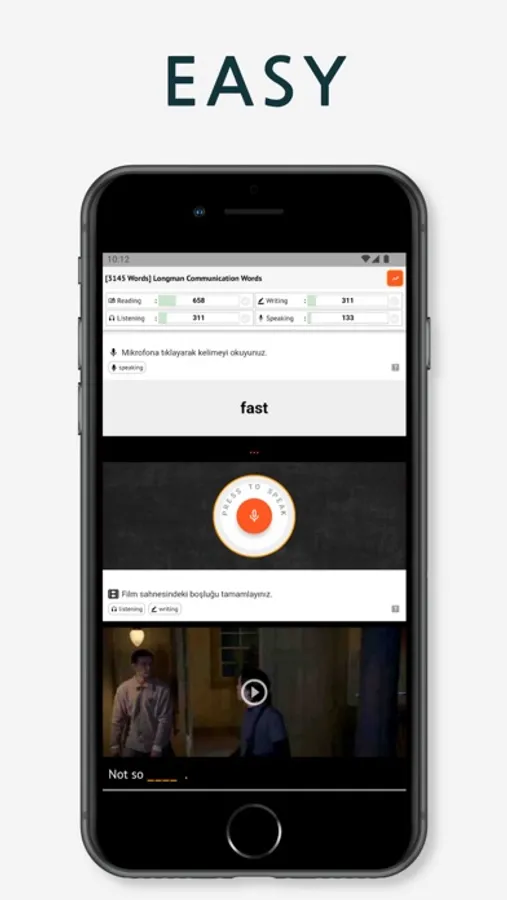 2. You can reinforce the words you have learned with learning methods such as word meaning, Example Sentences, Movie Scenes, etc., and Multiple Choice Word Test, Filling the Blank with Movie Scenes and Pronunciation modules.
