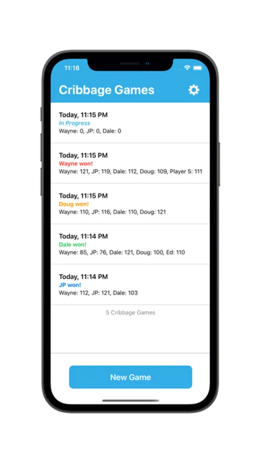 Advantages of this app over a traditional cribbage board is that you can see the history of the points and it is much faster than actually moving pegs. If you get interrupted, you can go back and see who had the last crib. If additional players show up, you can stop a game and start a new game with different players. You then have the ability to go back and play games that were in progress.