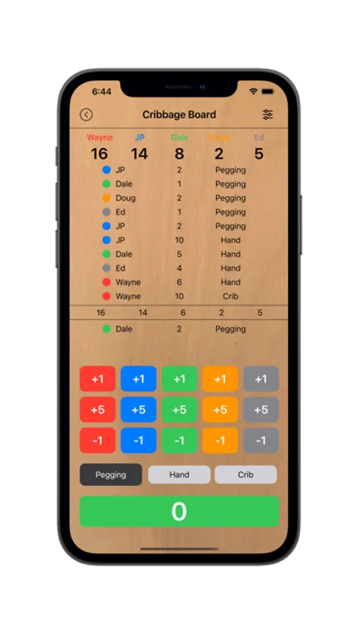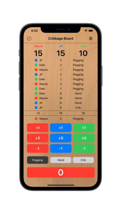 This app replaces a cribbage board. It keeps track of the players’ scores while playing cribbage. You can score two to five players. The scrollable history list shows detail of pegging, hand, and crib scores for each player. There is a sub total line after each hand. The totals for each player are displayed at the top of the screen.