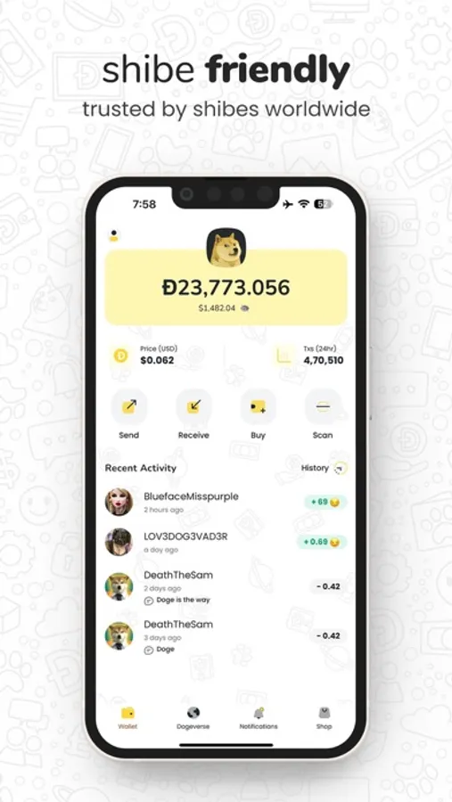 MyDoge is a free, secure, self-custodial social Dogecoin wallet. Our mission is to increase the number of daily Dogecoin transactions by building a community for Dogecoin enthusiasts to explore the Dogeverse and connect/meet with friends. With MyDoge you can buy, send, receive, and store your Dogecoin safely. You can also send & receive DOGE on Twitter!