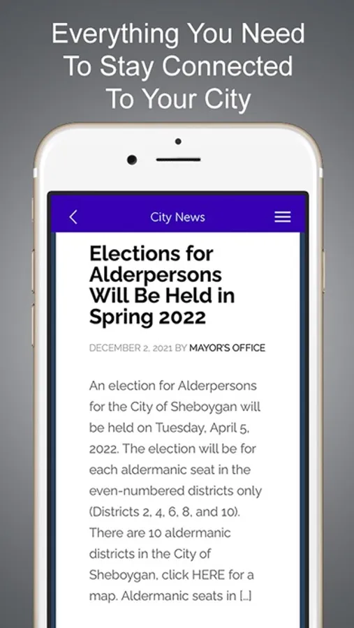 Become a civic resident and engage with your city like never before by downloading the official app. With features like Government, Downtown Business Directory, Residents, Park and Facilities, City News, Calendar, and Report an Issue you'll find it easier than ever to stay connected with City of Sheboygan, WI with just a few taps on your mobile device.