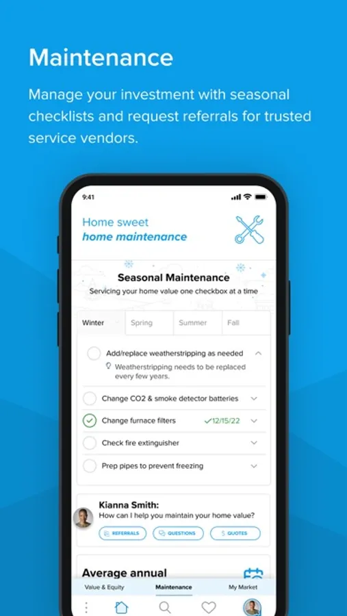 My Maintenance: Follow and complete home maintenance needs. Need a quick referral for some work for your property? Request trusted service vendors right from your agent.