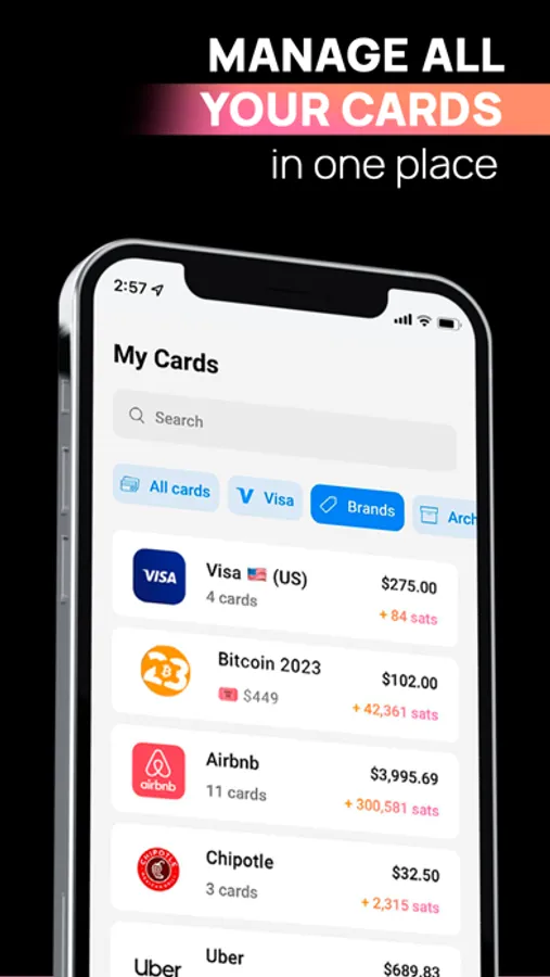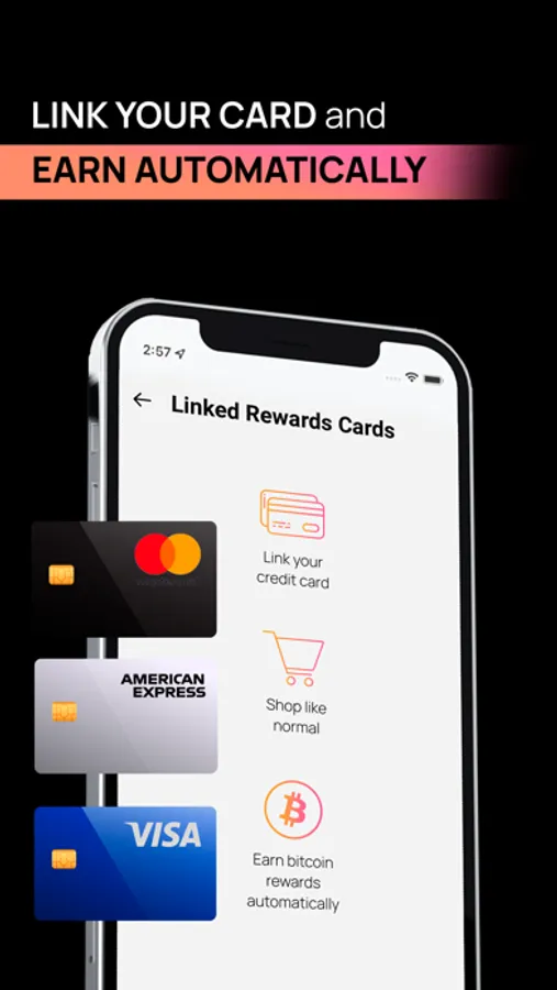 Turn all of your cards into bitcoin rewards cards with our newest feature: Card Linked Offers. Linking your credit and debit cards in the app, shop at a partner merchant, receive BTC rewards automatically!