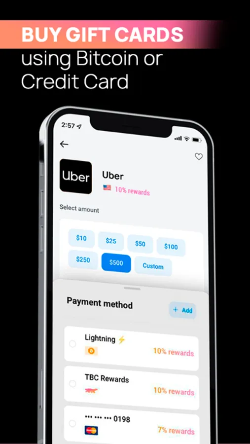 Pay with bitcoin, credit card, or debit card, and stash away rewards on every single purchase.