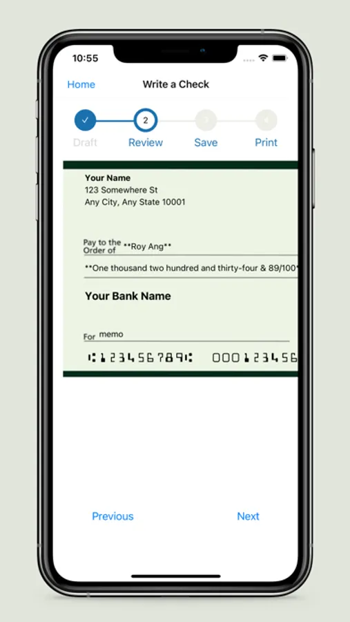 - Check review as the same format as the real cheque