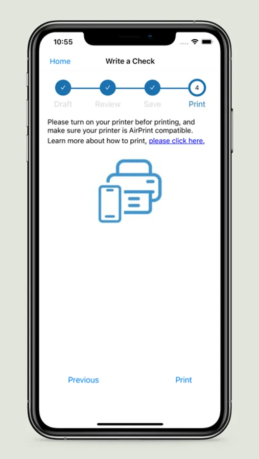 - AirPrint support, allow printing the check to the AirPrint-compatible printer