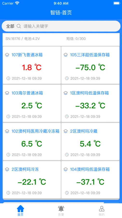 手机智链是用于 "智链" 温度集中监测系统的手机端应用,可以实现温度实时查询,网关、传感器的实时状态查询,历史温度数据查询,历史告警的处理和查询,校准证书查看,网关和传感器的基本配置。