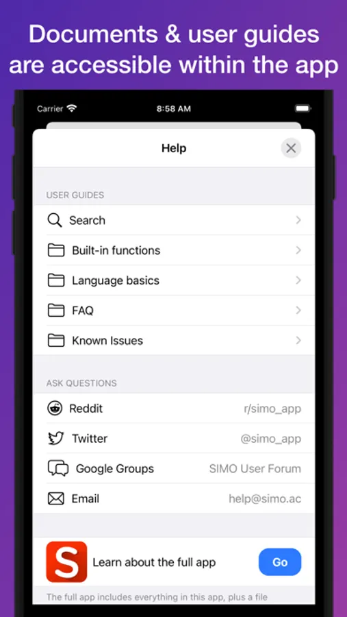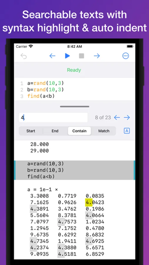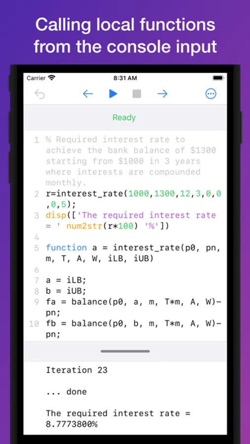Console is powered by the same MATLAB interpreter of our flagship app, SIMO. Before purchasing SIMO, you should download Console to see if this interpreter is adequate for your work. We continue to expand its capability by supporting more functions and language syntax in future updates.