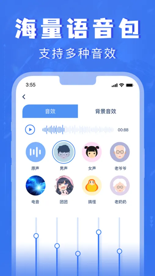您可以自定义多个参数,让声音更加逼真:也可以改变音调,自定义变音的强度,并为声音添加各种环境音!快来体验吧!