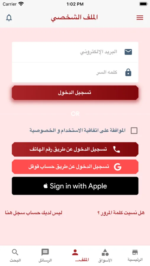 سهولة التسجيل يمكنك التسجيل بدون باسورد عن طريق حسابك في قوقل أو عن طريق حسابك في أبل