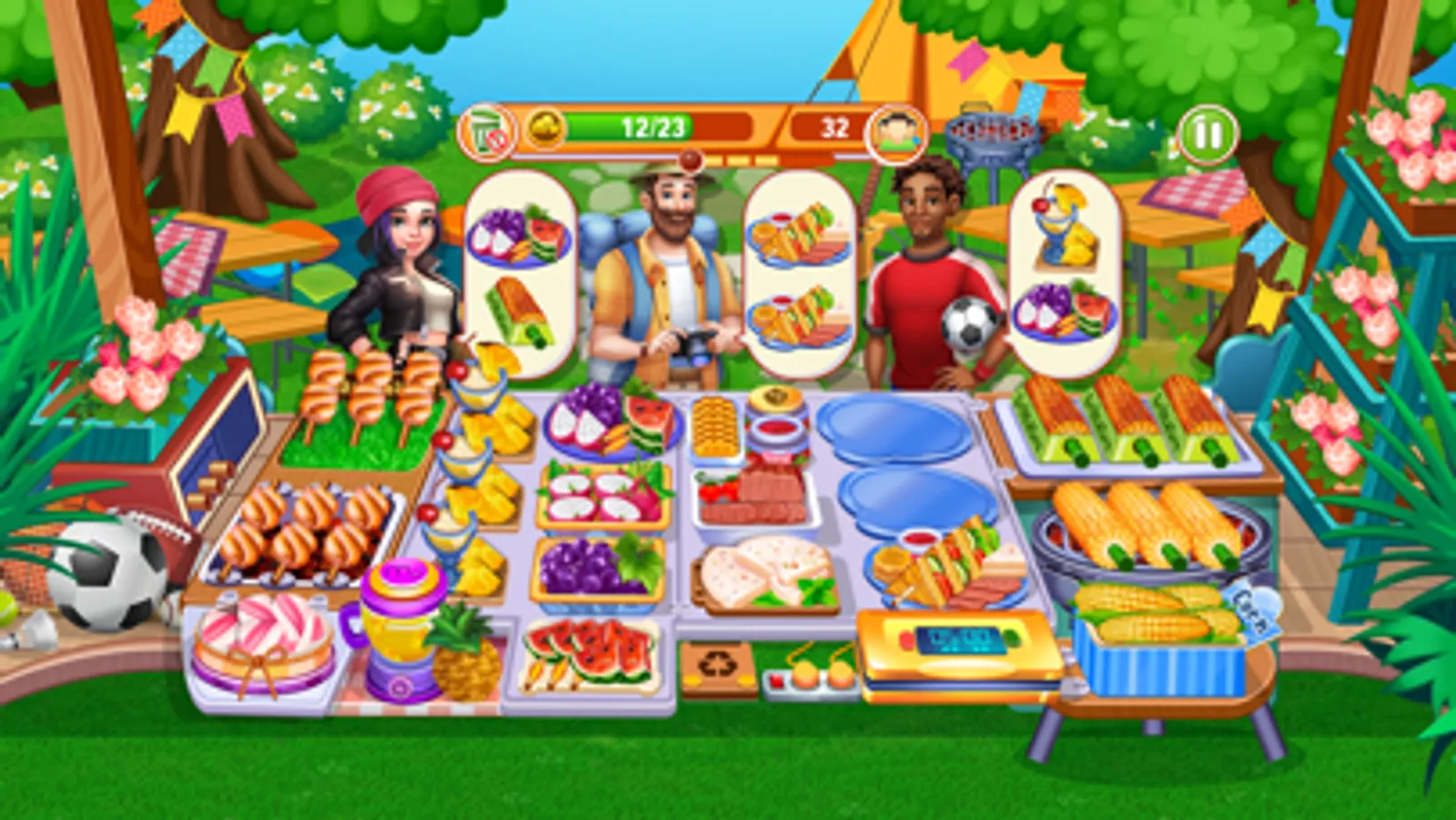 * Make tons of delicious dishes including baking pizza, tasty breakfast with juicy sausages and healthy salad, fresh veggies and fruits, juices, yummy corns and sandwiches, delicious desserts, and what not!