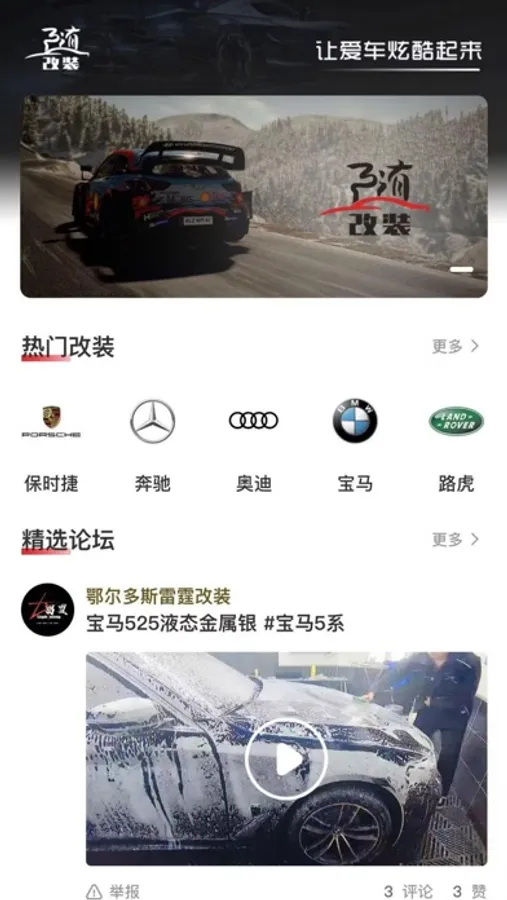 随改装是一款集汽车改装与经验分享的app,力求改装出不同凡响。满足车友的各种改装需求,让车友在这里感受到最绚丽的改装技术,更流畅的分享与交流。平台提供最专业的改装专家,为您的爱车提供高效的改装服务,专业的改装建议。