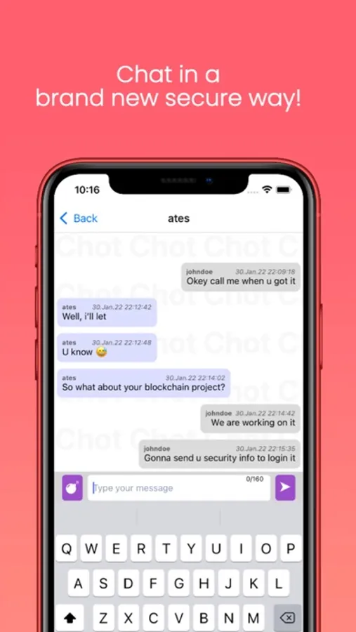 Chot* uses end-to-end encryption to secure your messages. Even server does not know your private keys to decrypt. Also it does not contain any advertisement or data collection.
