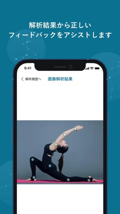 ヨガポーズを撮影するだけ。AIが対象者の姿勢を自動解析。あなたはオンラインでもリアルでも対象者の姿勢を瞬時に把握できます。