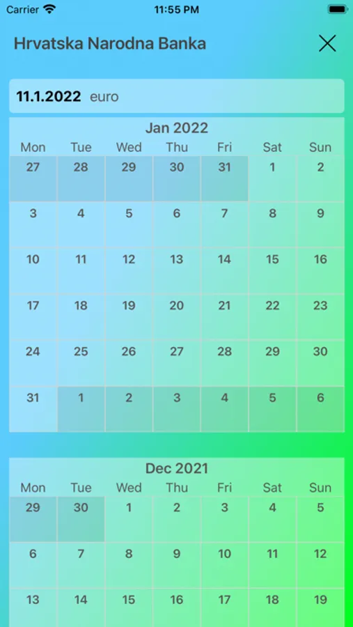 Praćeno preko 50 valuta, uključujući: euro, američki dolar, britanska funta, mađarski forint, švicarski franak, poljski zloty, bugarski lev, kanadski dolar, moldavski leu, turska lira, australijski dolar, švedska kruna, danska kruna, rublja Norveški jen, češka kruna itd.