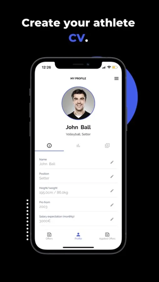 1. Create your profile in minutes. Include statistics, full matches and highlights to increase your visibility