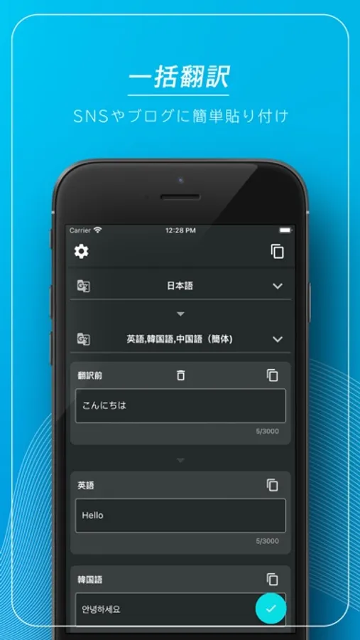 1つの言語から複数の言語で同時に翻訳することができるアプリです。