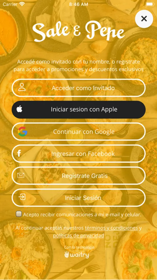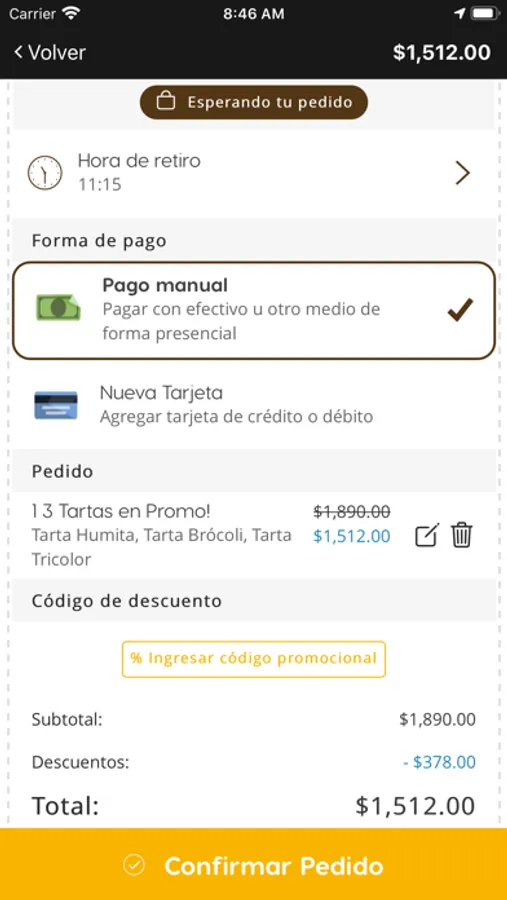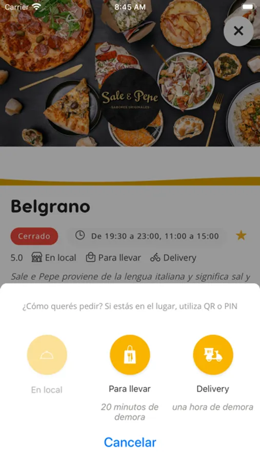Selecciona la modalidad de compra. Delivery, para llevar o consumo en el local