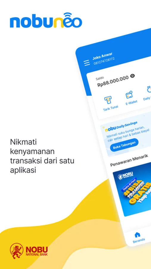 Nikmati mudahnya kelola keuangan yang praktis dan aman, di mana saja dan kapan saja dengan nobuneo, aplikasi mobile banking dari Nobu Bank.