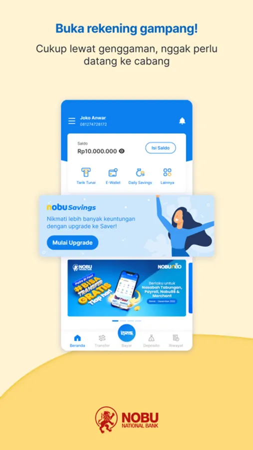 Tanpa harus datang ke kantor cabang atau ATM, bisa buka rekening Nobu Bank dan aktivasi nobuneo langsung dari HP.