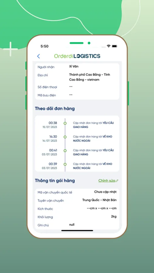 Oddlogistics liên tục tracking và gửi cập nhật trạng thái, địa điểm, cân nặng của đơn hàng đến Email của khách hàng.