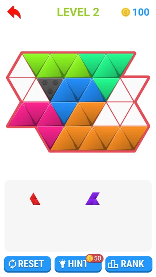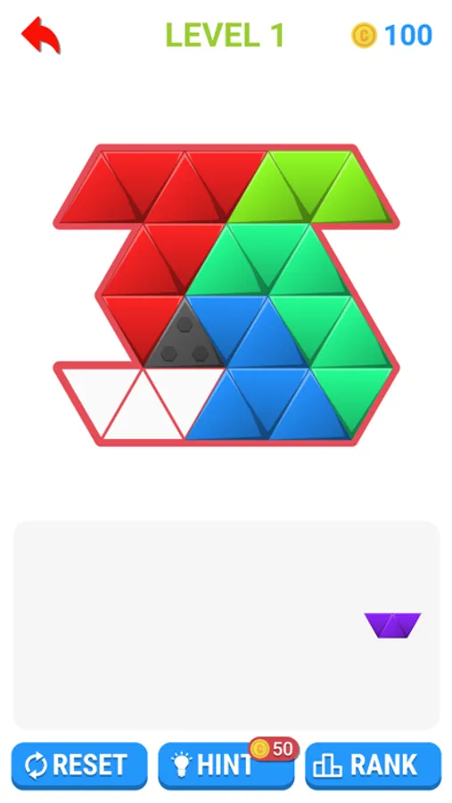 This is an interesting and leisure puzzle game. Players need to splicing graphic fragments of various shapes in a large graphics, and finally fill the entire graphics to complete the level. The level prompts set in the game can provide you with inspiration. And help pass the level, the game has three different ways to play, namely hexagonal puzzle, triangle puzzle, square puzzle. More than 1000 colorful level designs, puzzle solving, endless fun, leisure and relaxation, vacation travel. You can play it anytime and anywhere to exercise your brain. It is a fun game, come and download the challenge!