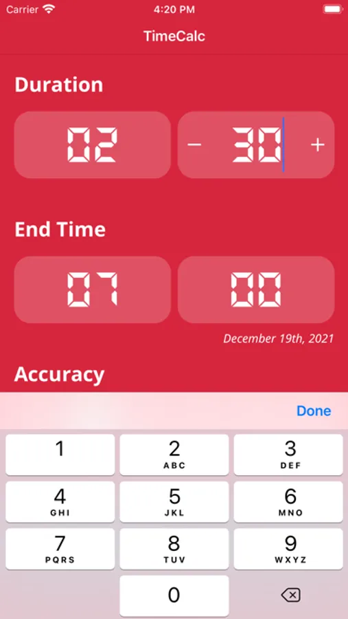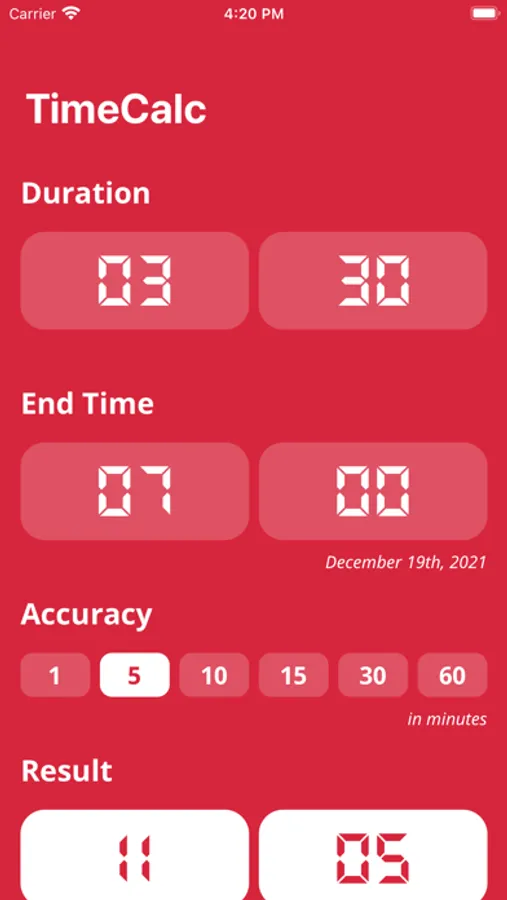 TimeCalc does all the hard work four you. Just enter your duration of the program, when you want it to finish and how accurate your delay function is. You'll see the result at the bottom.