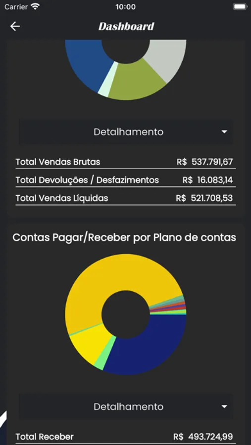 Além de uma Dashboard Financeira para acompanhamento da empresa.