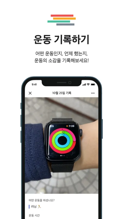 어떤 운동인지, 언제 했는지, 어땠는지를 기록해보세요!