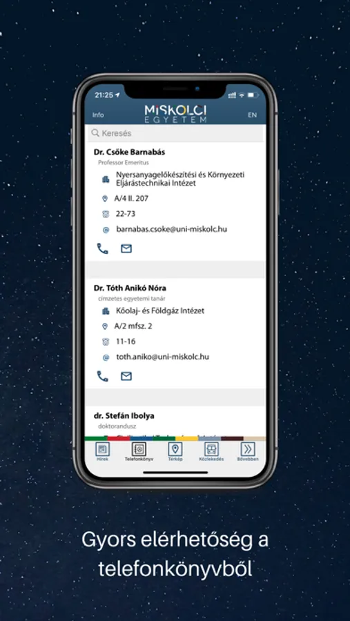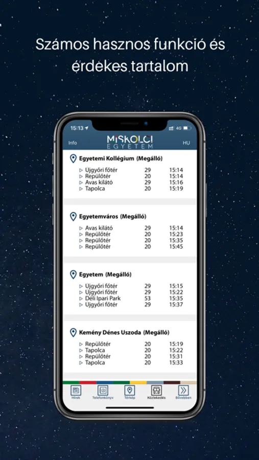 A Miskolci Egyetem ingyenes alkalmazása elsősorban egyetemi polgárok részére, de sok hasznos információt tartalmaz más felhasználók számára is.