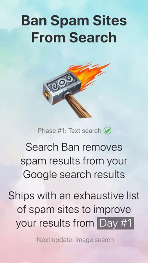 Currently, it de-clutters and removes spam websites from regular Google search. Search Ban will support image search on Google as well as other search sites like DuckDuckGo and Bing in the next few updates.
