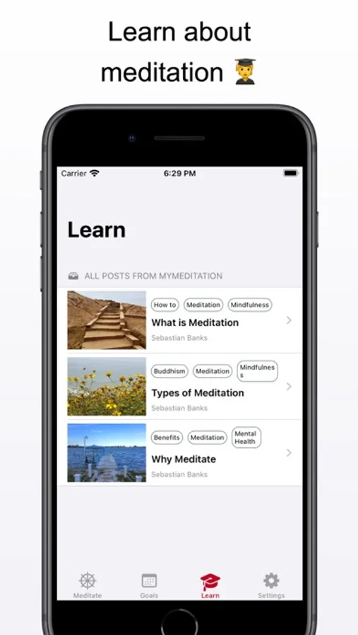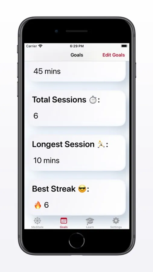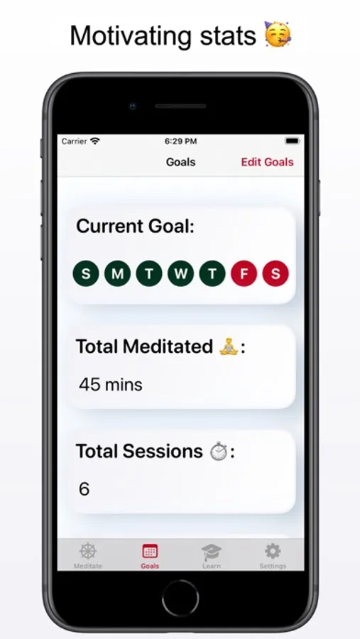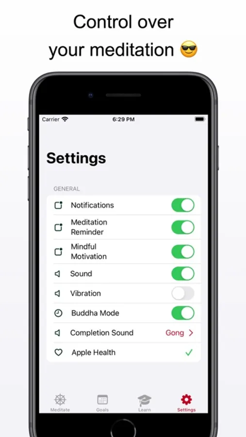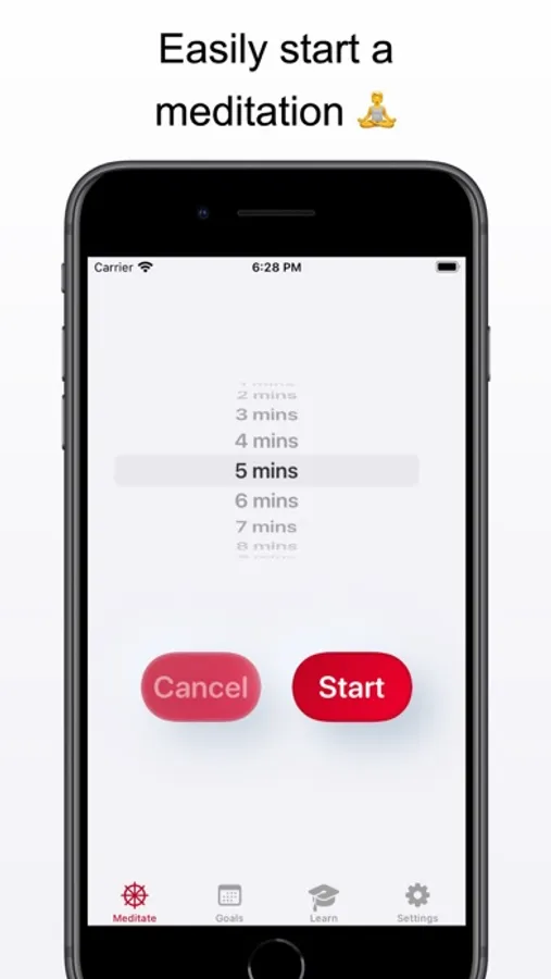Connect to the Health App and myMeditation will automatically update your mindfulness minutes after each session. Easily start, pause, or cancel a meditation in the meditate tab. View your weekly progress and helpful stats to keep you motivated in the goals tab. Learn everything a beginner needs to know about meditation in the learn tab. And control your experience in the settings tab.