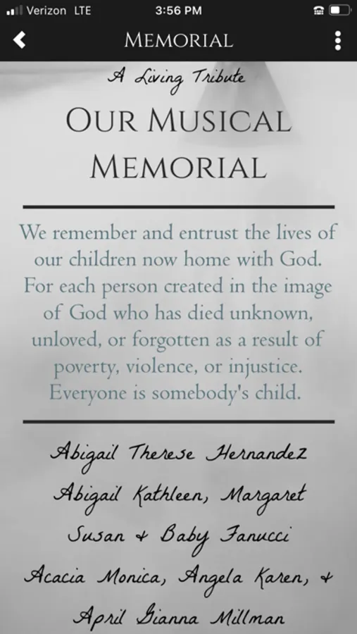 -Ongoing musical memorial of departed children and loved ones