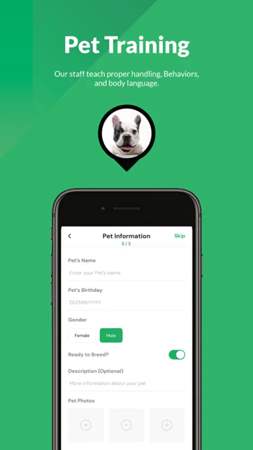 Upload your pets name, age, gender, description of the pet, along with recently taken photos