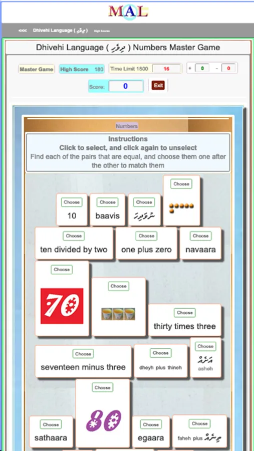Play Dhivehi Learning Games, Study and Learn with online Flash cards, Take Dhivehi Tests