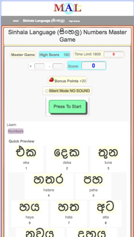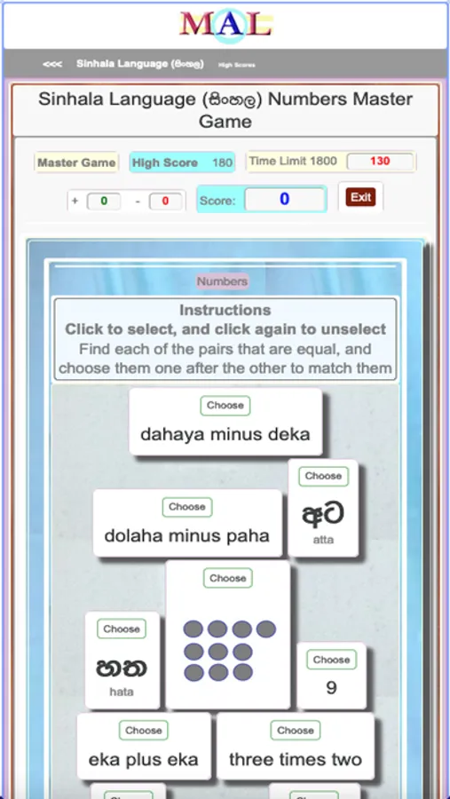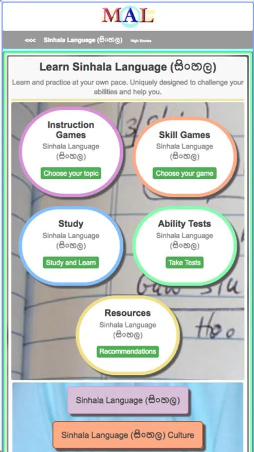Play Sinhala Learning Games, Study and Learn with online Flash cards, Take Sinhala Tests
