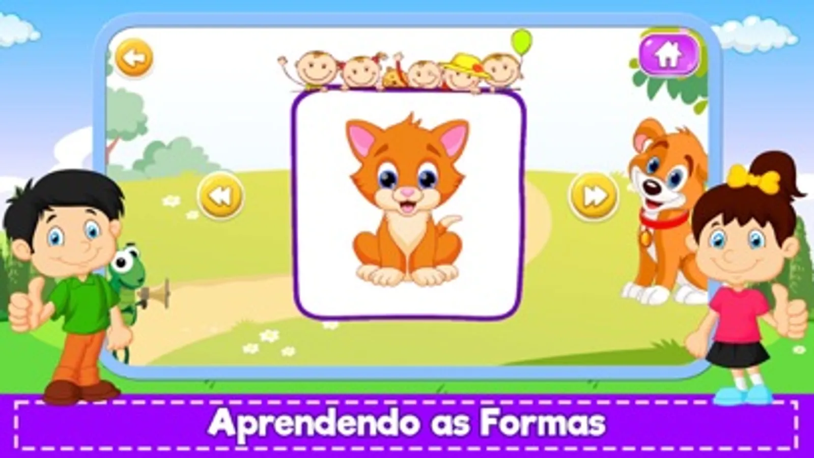 Jogo educativo para aprender de forma divertida e inteligente as vogais, alfabeto, números, formas, cores, animais, frutas, vegetais e coisas com diversão e alegria. Você aprenderá brincando.