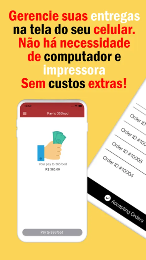 Todo o gerenciamento dos pedidos poderá ser realizado diretamente no App do Parceiro, sem a necessidade de computadores e impressoras caso não possua. Tudo poderá ser feito no App no seu celular.