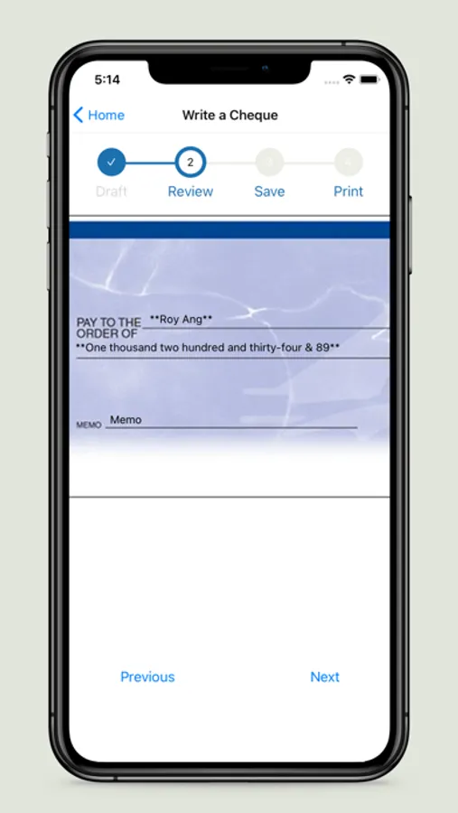 - Check review as the same format as the real cheque