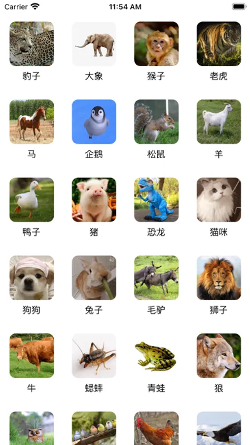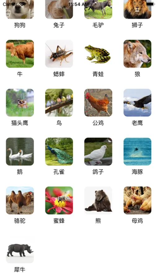 听常见动物声音,浏览喜欢的动物,点击即可听见它的声音。
