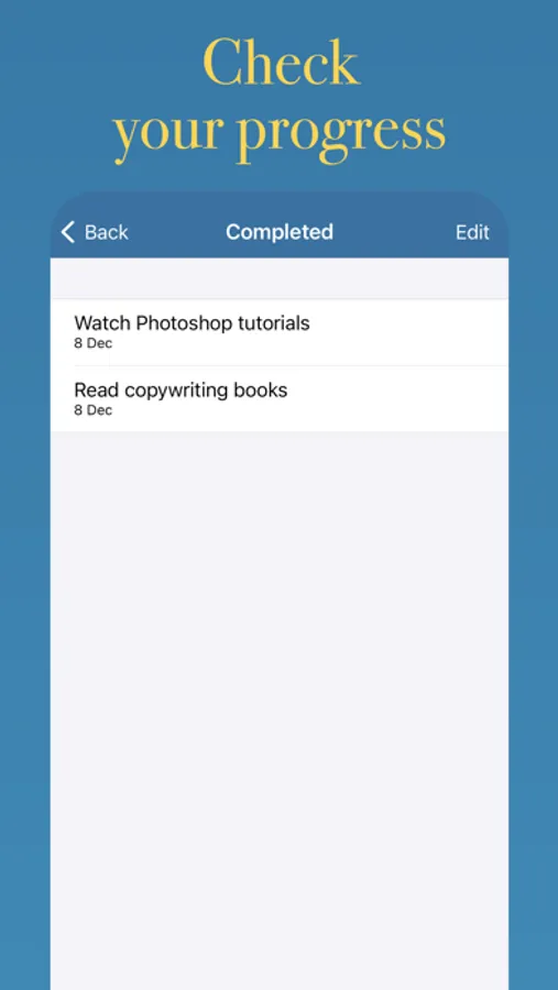 When you complete a to-do item, it will go to your Completed list. By looking at your Completed list, you can see what you have done to keep the resolution. It will help you stay motivated.